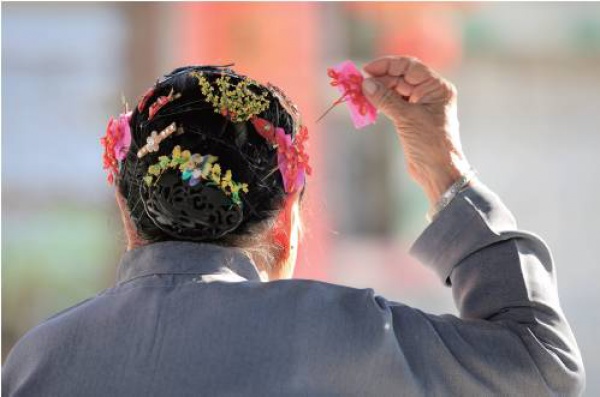 在厦门翔安,妇女结婚、做寿、过春节都要插“春花”。