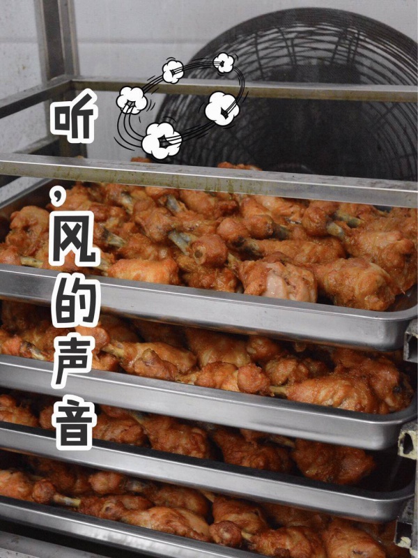 油锅里“沐浴”完的鸡腿们,立马要投入电风扇的怀抱,听一听风的声音,让整个腿上的肉都轻松凉快下来。