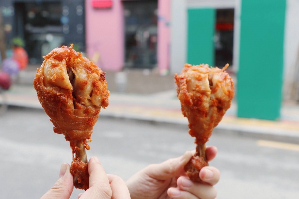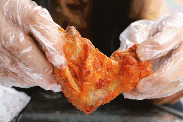 1~2~3~准备好了吗,就是这个动作,超有弹性的鸡翅“皮开肉绽”啦,脆中带着滑嫩和粘糯的表皮完美得带着恰好的微辣,不要担心辣意太过撩人,真的只是刚好唤起满嘴口水的馋人辣度!比起鸡腿,鸡翅的肉更加细腻些,一口皮肉相连在口中,简直就在口中快乐的打转了。