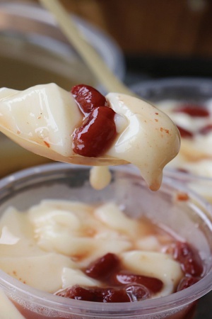 讲真,吃个鸡腿不觉得还应该配点什么?别担心,鸡腿哥哥都替你想到了,来到岛内的鸡腿哥哥居然就和大条豆花走到了一起,在一起,就是这么搭。小鱼君通常都是点上一个大份量的豆花,来喏,这又甜又绵的大红豆真是再多也不嫌多。