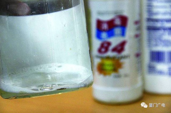 随后又倒了点84消毒液…