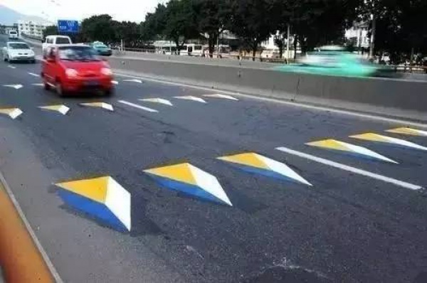 这种彩色标线比较少见,很多厦门车主不一定见过。看上去,它就像两块在路面凸起的石墩,作用是提醒车主不要超车。