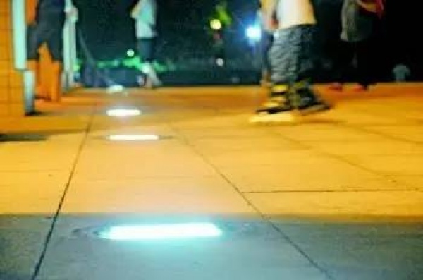 小孩子看见地面上五彩斑斓的,自然很好奇,于是挣脱妈妈,伸手就摸地上的地灯。