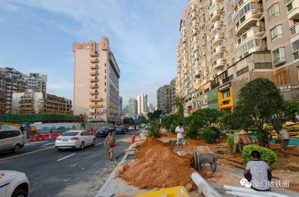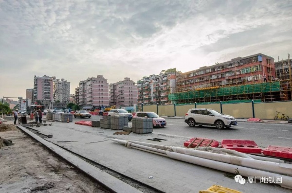 地铁1号线岛内始发段三个站点,镇海路站、中山公园站、将军祠站现场的进度飞快。继全线“轨通”、“电通”后,始发段3个炸年的出入口逐渐成型,沿线景观提升工程也陆续施工。