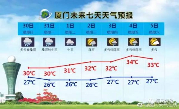 预计未来12小时,厦门将出现50mm以上强降水。崇武到东山沿海今天最强风力可达9~10级,厦门沿海最强风力可达7~8级,阵风9~10级。今天厦门有暴雨,请注意防范。