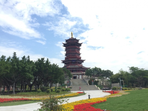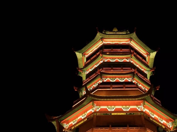 闽台岛上的杏林阁是园博苑标志性的建筑物,杏林阁典雅大方,主体建筑七层,平面为八边形,威严肃穆。