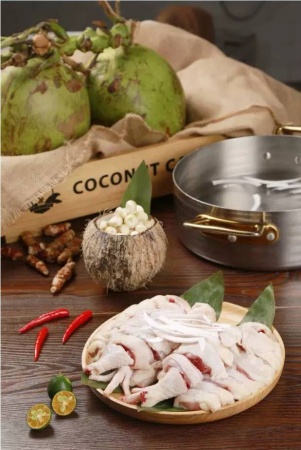 作为2017年"最拼火锅",星洲椰场以天然清新的椰青锅受到广大美食爱好者的追捧,它辅以清香的清香的竹笙和珍珠马蹄一起烹煮,带来最正宗的海南椰子风味。