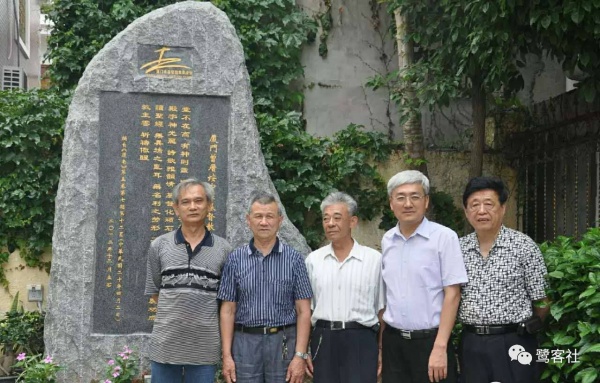 图为笔者(右1)及部分蔡振勲后裔与福建省基督教两会秘书长、福建神学院蒿志强副院长(右2)在曾厝垵基督教堂纪念碑前留影。