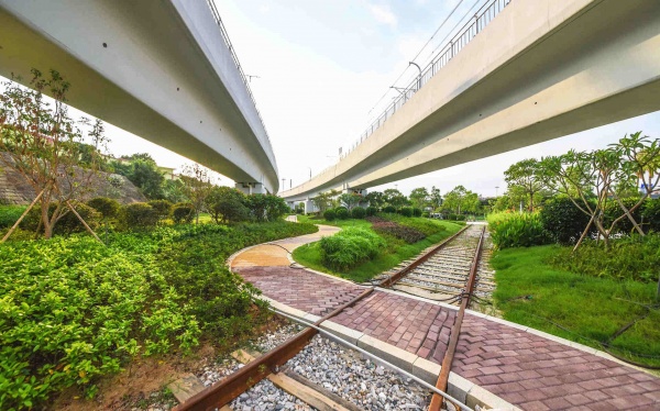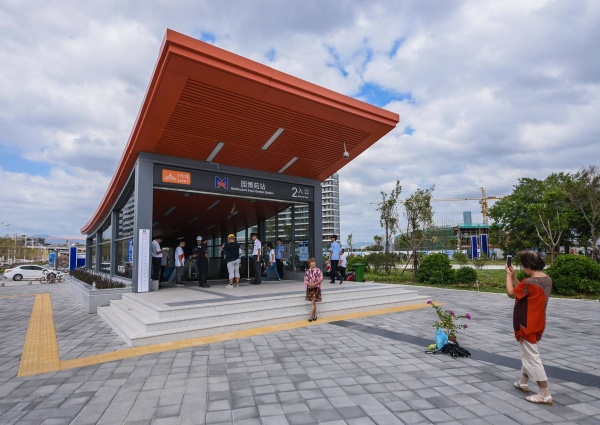 集美学村站作为出岛后的第一站,站房充满嘉庚建筑元素。考虑到这里是以前的集美老火车站,而且紧邻集美学村,因此设计时突出老火车和嘉庚建筑元素,使用了闽南红砖、老铁轨等。