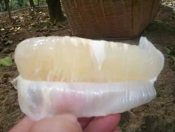 4、将柚子皮剥开,去掉柚子瓤的白色部分,再把包裹着柚子肉的薄衣去掉,就可以吃了。