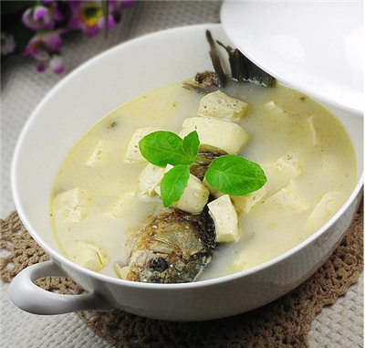 鲫鱼健脾补虚,最适合做汤。喝鲫鱼汤胆固醇不但不高,反而能降低胆固醇,而且蛋白质含量高,做鲫鱼汤的时候可以适当的放一些豆腐。