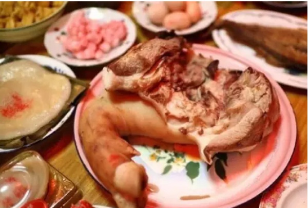 祭拜天公必须非常隆重,供品也必较讲究,顶桌主要以清素斋品为主,下桌摆的五牲荤食是献给天宫的部属神明。而顶桌除了斋品外,还要鲜花、蜡烛各一对。并且还要以红龟粿、发粿来敬奉。因为红龟粿代表吉祥,而上头的龟甲图案表示长寿,来说明天公有保育万物之德,必须长长久久,地位远超人类祖先。至于献给天公的银纸钱则是需要用特别制作的‘天公金’,来代表人们对天公崇高的敬意。节日小禁忌由于汉族民间非常重视祭拜天公,所以这一天都有一些不可触犯禁忌。如不可曝晒女性内裤、不可以随便倾倒便桶、口出秽言…等等,以免亵渎崇高的玉皇大帝。闽台年俗敬天公汉族的敬天思想是非常突出的,认为天乃宇宙的主宰者,对万物具有强大的统治力、正是基于这种观念,皇帝被称为“天子”。天子也必须顺应天意,如果违反了,就丧失天命,就会有一位真命天子来取代他。无形的“天”同时也被具体化了,称为玉皇大帝,俗称天公。每年的正月初九为天公生日。“天公生”是闽台汉族民间一个极为隆重的节日。年初七就开始制米龟、圆、“牵”,蒸发粿、甜粿、咸粿。初八晚上,暮色初合,便当“天”摆上八仙桌。没有庭院的,则摆在窗口边。随后摆上十二碗干鲜水果,十二碗素菜,以及蒸好的米龟、?@、面干等。也有些人家供荤菜,那就要双份的五牲,十分隆重。