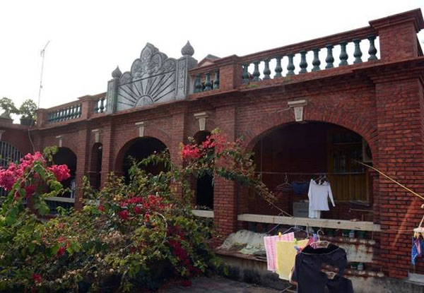 该楼坐北朝南,为二层红砖南洋式风格建筑,呈长方形,主楼前带有自家小庭院。