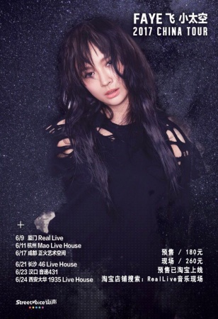 活动主题:2017Faye飞“小太空”ChinaTour6/09厦门RealLive