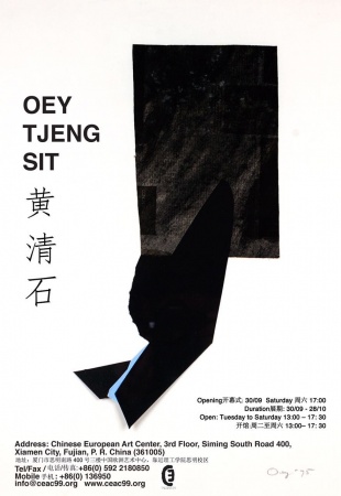While Oey generally incorporated western values his state of mind remained predominantly eastern. His work turned from its initial surrealist nature to a more abstract calligraphical style. He felt strongly attracted to Chinese culture although he had never been to China. The shelves in his library were filled with numerous books about the culture and the history of the country. It was his longtime wish to visit his fatherland some day. But he never did. He was killed in a traffic accident on the streets of Amsterdam while he was riding his bicycle. Now his work has made that journey.