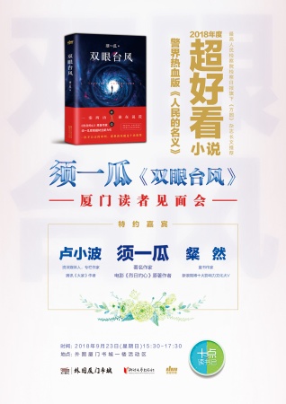 双眼台风作者须一瓜 作家、记者。曾获华语传媒文学奖最具潜力新人奖,郁达夫小说奖,《人民文学》年度奖,《小说选刊》《小说月报》中短篇小说奖,百花文学奖,等。主要作品有《淡绿色的月亮》《老闺蜜》《保姆大人》《太阳黑子》等。新书《双眼台风》系其最新罪案题材力作,首发于《收获》2017年第六期头条。小说《太阳黑子》曾被改编成电影《烈日灼心》。