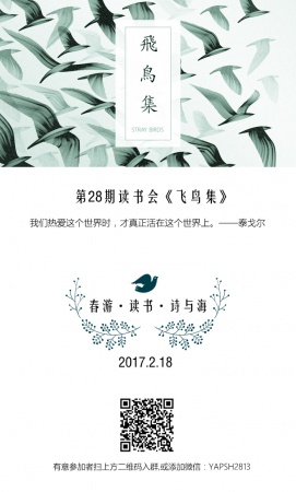 活动主题:在初春迎接夏天的飞鸟(第二十八期读书会预告:《飞鸟集》)